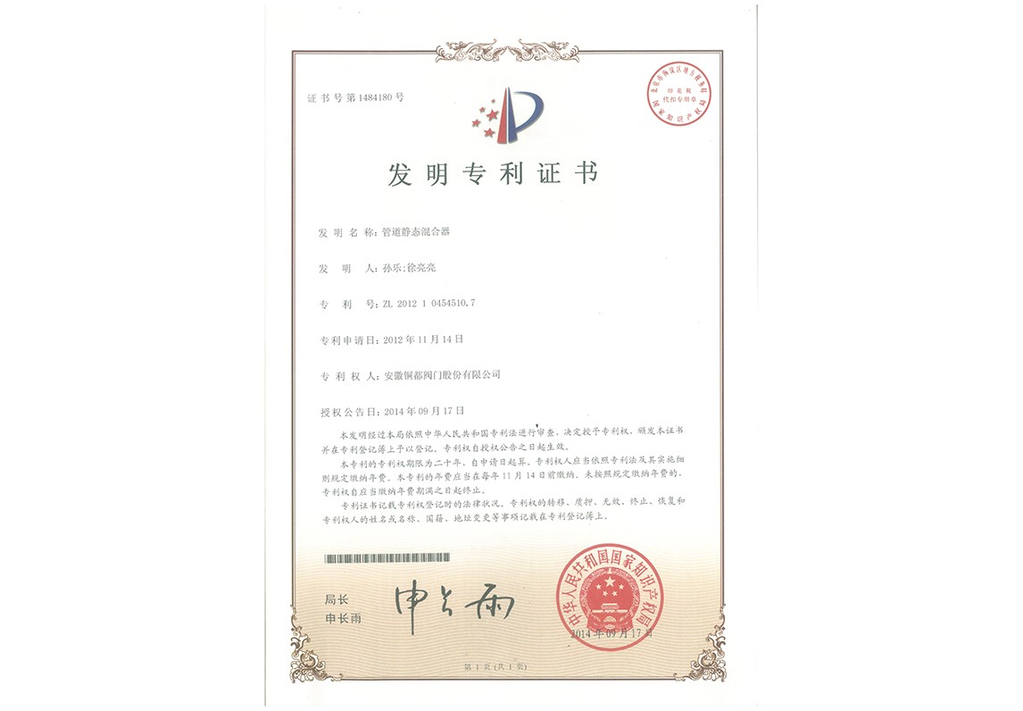 您當前的位置: 首頁 > 走進我們 > 榮譽資質 > 專利證書