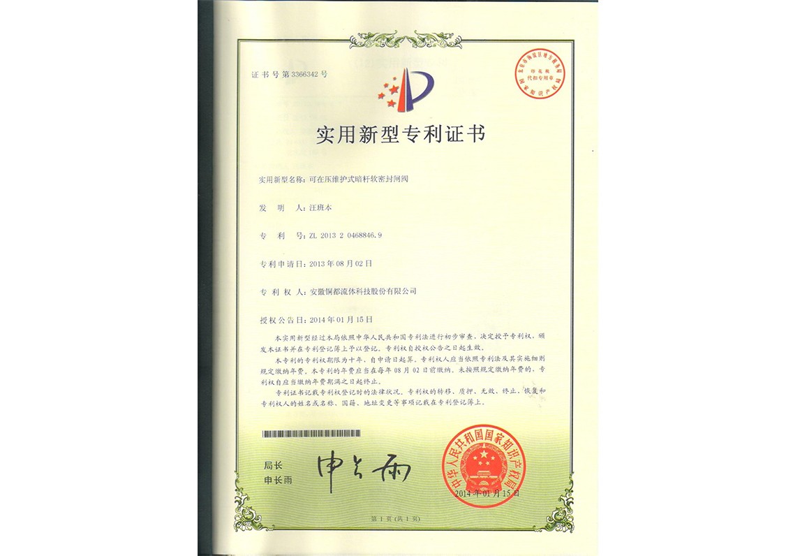 專利密集型產品認定-閘閥