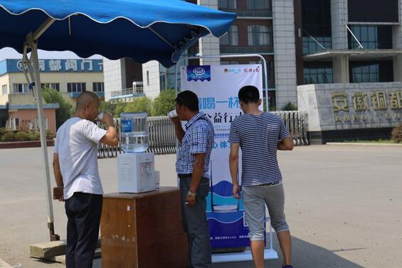 他們用汗水,方便了市民的生活、他們用汗水,洗去了城市的塵埃,因?yàn)橐獔?jiān)守崗位,甚至有時(shí)無法在口渴時(shí)喝一杯涼水,也無法在酷暑難耐時(shí)稍作休息。炎炎夏日,一杯清水對(duì)坐在辦公室的市民來說,是微不足道的,但是對(duì)高溫酷暑下的為戶外高溫作業(yè)人員來說,喝一杯清水在繁忙的一天中卻顯得如此奢侈。7月25日,共青團(tuán)銅陵市委、銅陵日?qǐng)?bào)社聯(lián)合發(fā)起"請(qǐng)喝一杯水"愛心公益活動(dòng)后,我公司立即響應(yīng)號(hào)召,在我公司大門口設(shè)立愛心崗?fù)?愛心休息站",為在烈日下工作的人們提供夏季的一絲涼意。