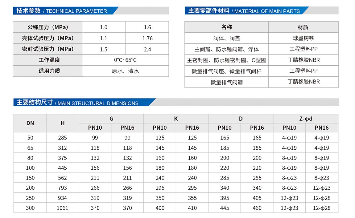 2、工程塑料閥瓣與浮球比重好性能可靠,即使冬季閥內結冰,當冰化開后可繼續使用,不會出現浮球被冰凍失效的問題。