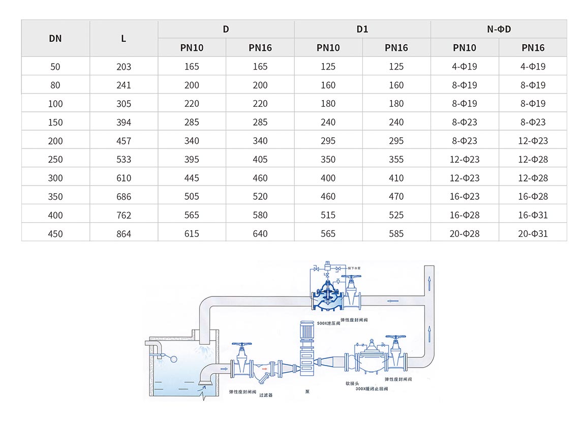 500X泄壓/持壓閥主要用于消防或其他供水系統(tǒng)中,以防止系統(tǒng)超壓或維持消防供水系統(tǒng)的壓力。消防泵關(guān)閉后還可以減小水錘的沖擊。也用于大型供水系統(tǒng)的水錘消除裝置,并且閥門控制系統(tǒng)的進口處裝有一個自清潔濾網(wǎng),利用流體特性,使比重較大、直徑較大的懸浮顆粒不會進入控制系統(tǒng),確保系統(tǒng)循環(huán)暢通無阻,使閥門能安全可靠地運行。系統(tǒng)動作平穩(wěn)、強度高、使用壽命長適用于DN600口徑以下的管道。