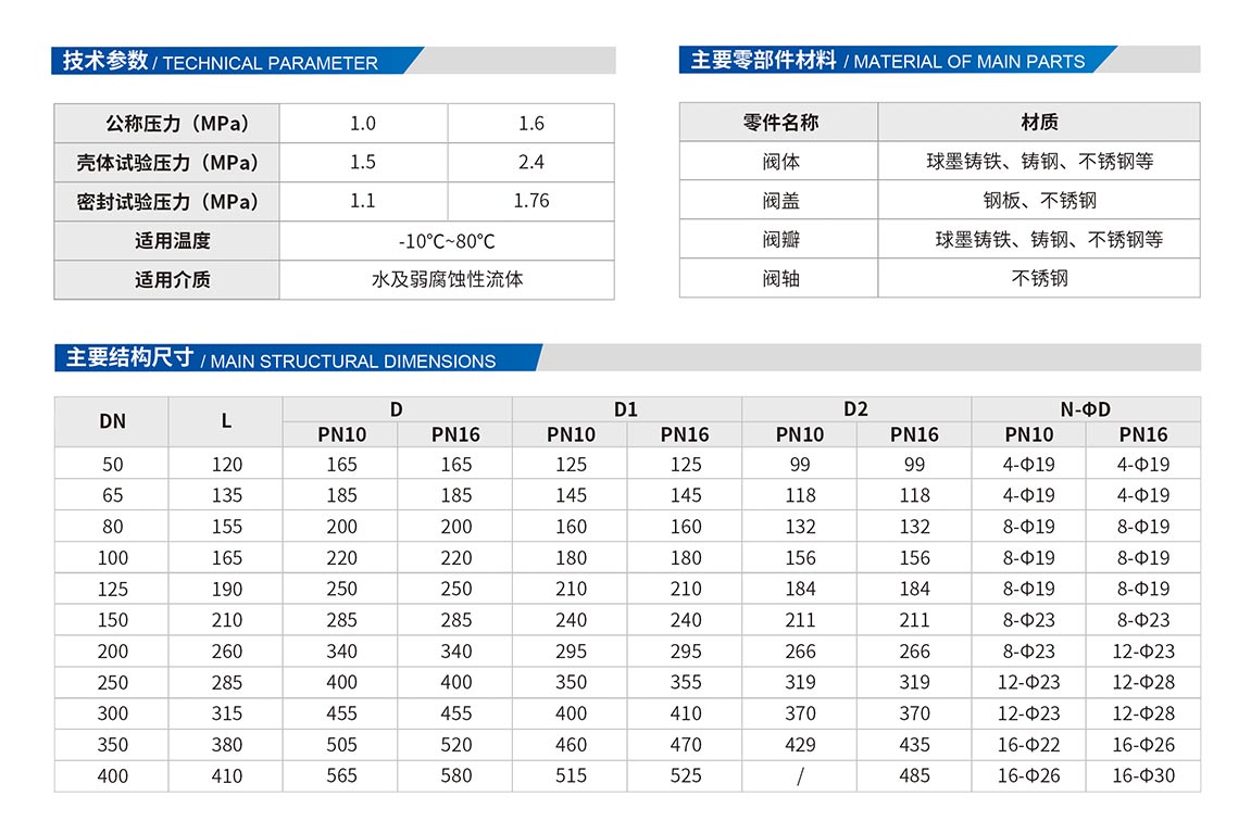 3、閥瓣關(guān)閉的行程短,只有公稱通徑的1/4,閥瓣的關(guān)閉時(shí)間短,減少了水錘的產(chǎn)生。